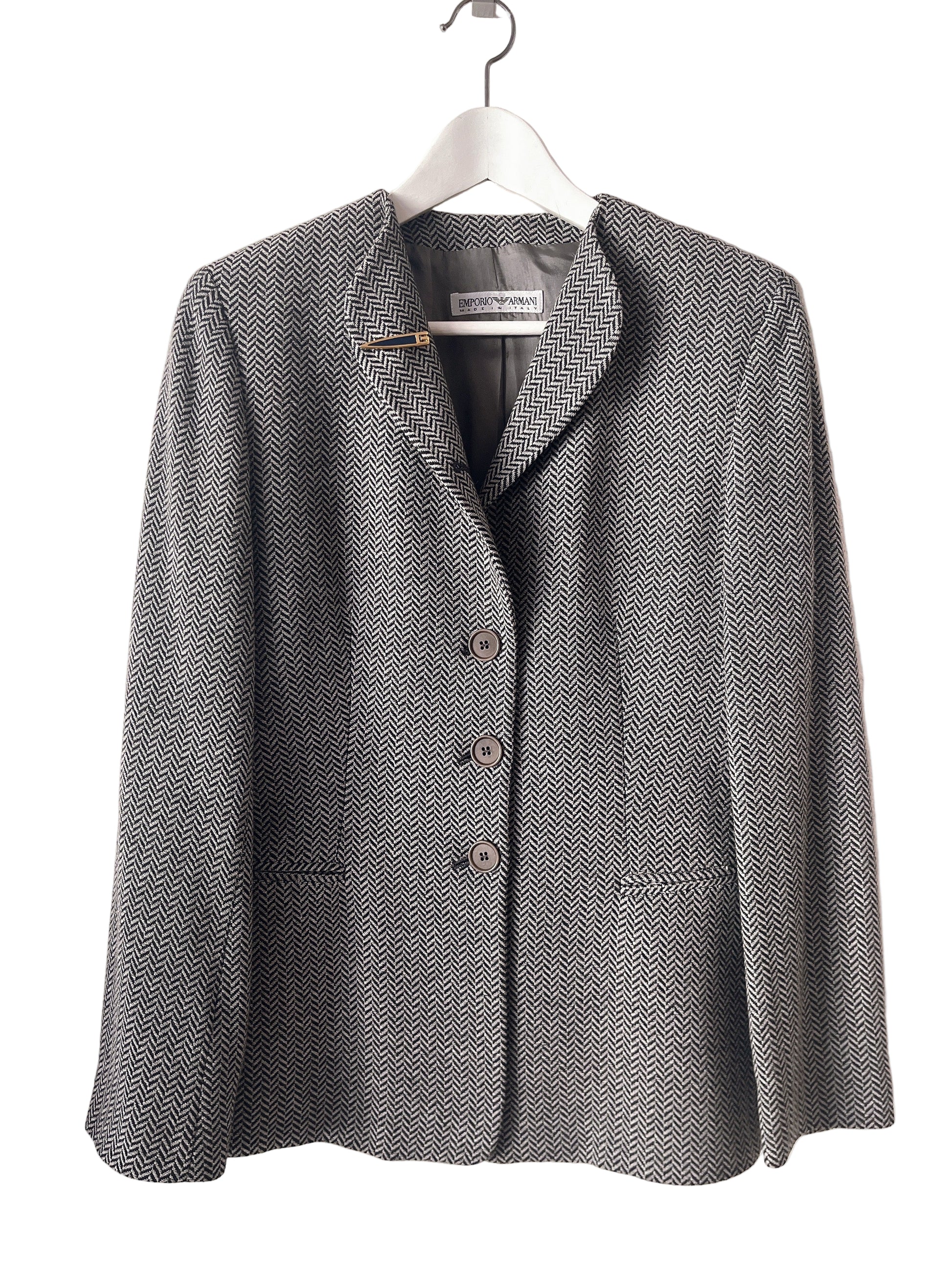 ブラック アンド ホワイト ヘリンボーン ジャケット
